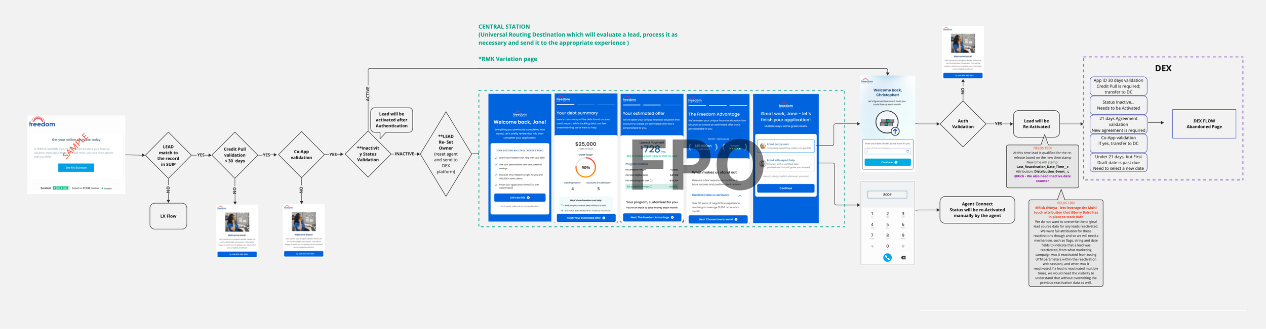 When prospects dropped out the debt relief enrollment flow and came back via email, they re-entered the 50+ screen flow without being reminded of their progress, debt information, and the value props of the product.