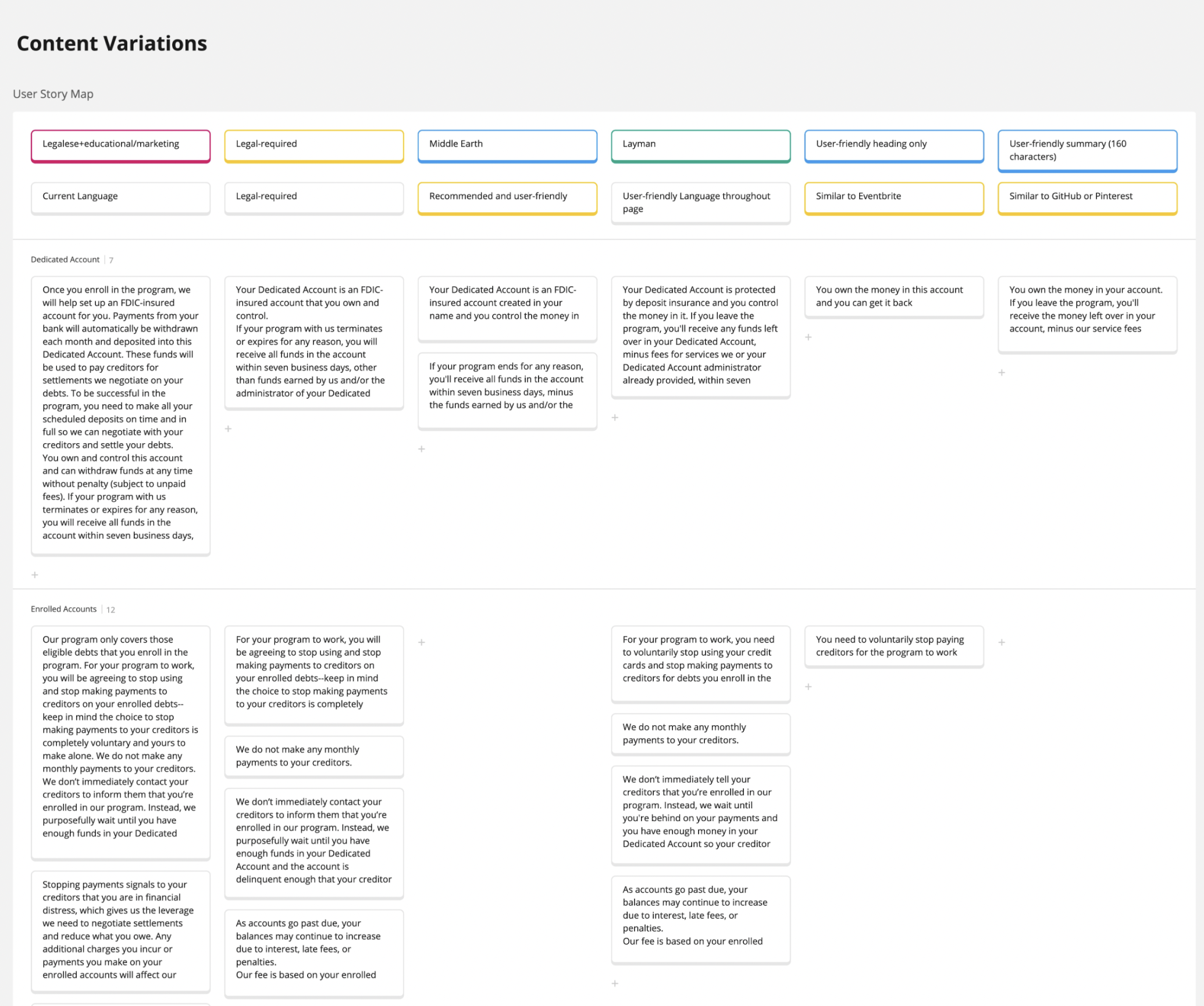 • I wrote several variations of what the content structure could look and sound like to help determine the best one with legal & compliance and other stakeholders.